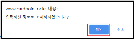 입력사항이 잘 입력 되었는지 확인해 보신후 확인 버튼을 눌러 줍니다.